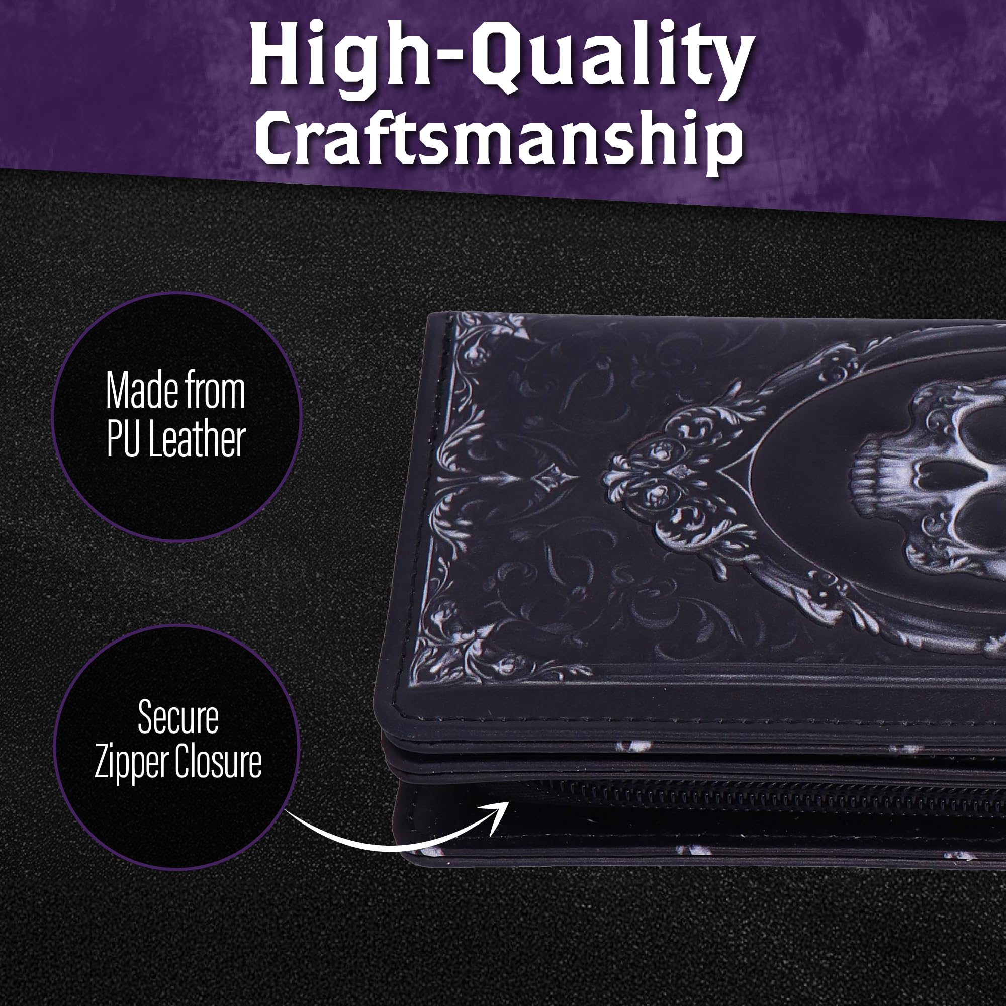 - DESIGN FEATURES: Baroque-style skull embossed pattern adds a unique gothic aesthetic to this fashionable coin purse.