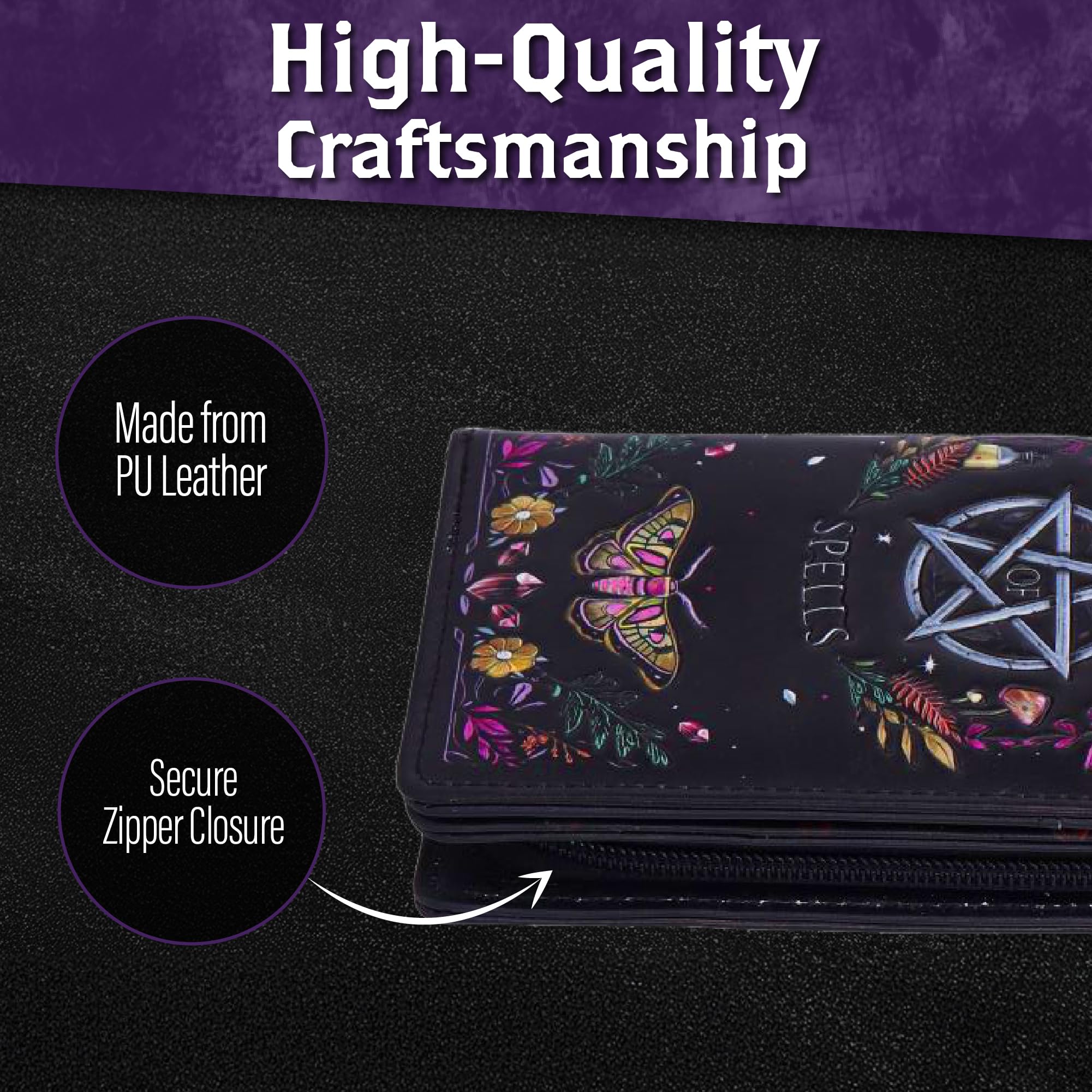 Book of Spells Embossed Coin Purse, Gothic Style, 19 cm x 10 cm x 3 cm—