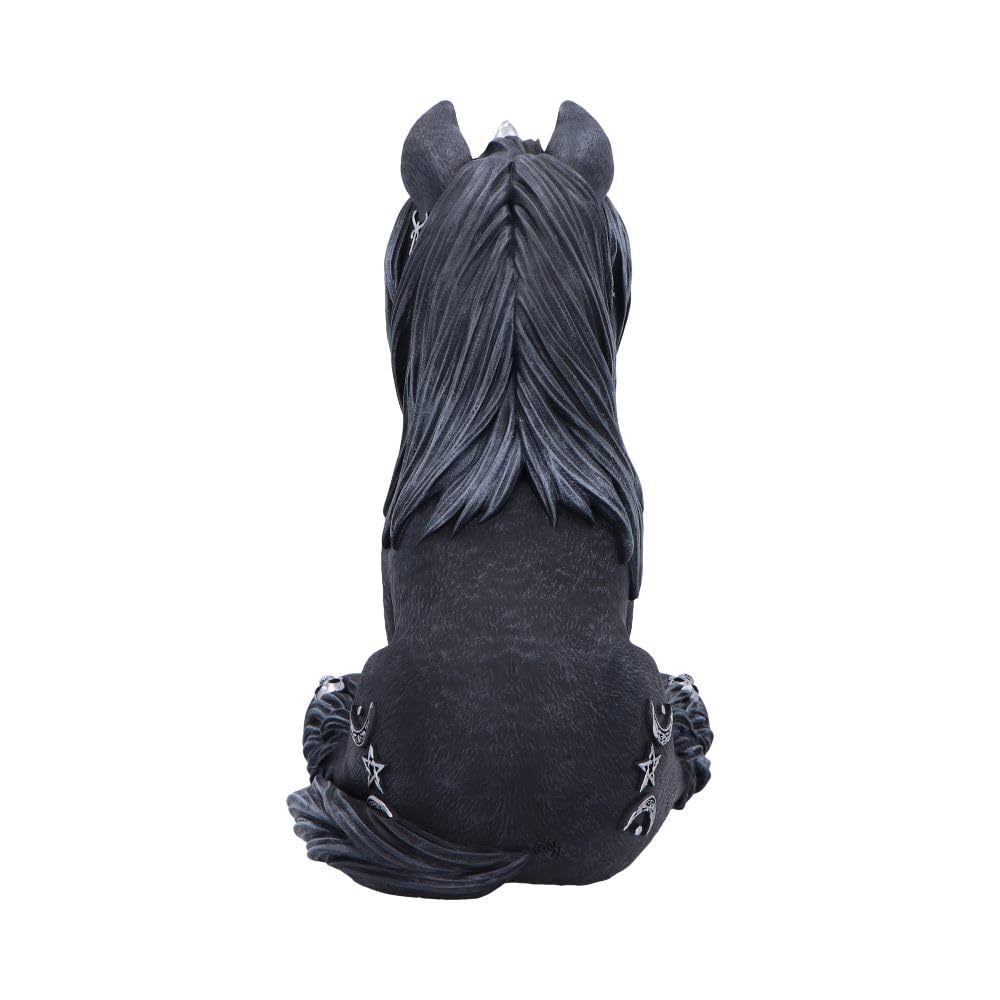 - Whimsical Gothic Charm - This unicorn figure combines the enchantment of mythical creatures with Gothic elements such as pentagrams, skulls and moon symbols, creating a unique decorative piece.