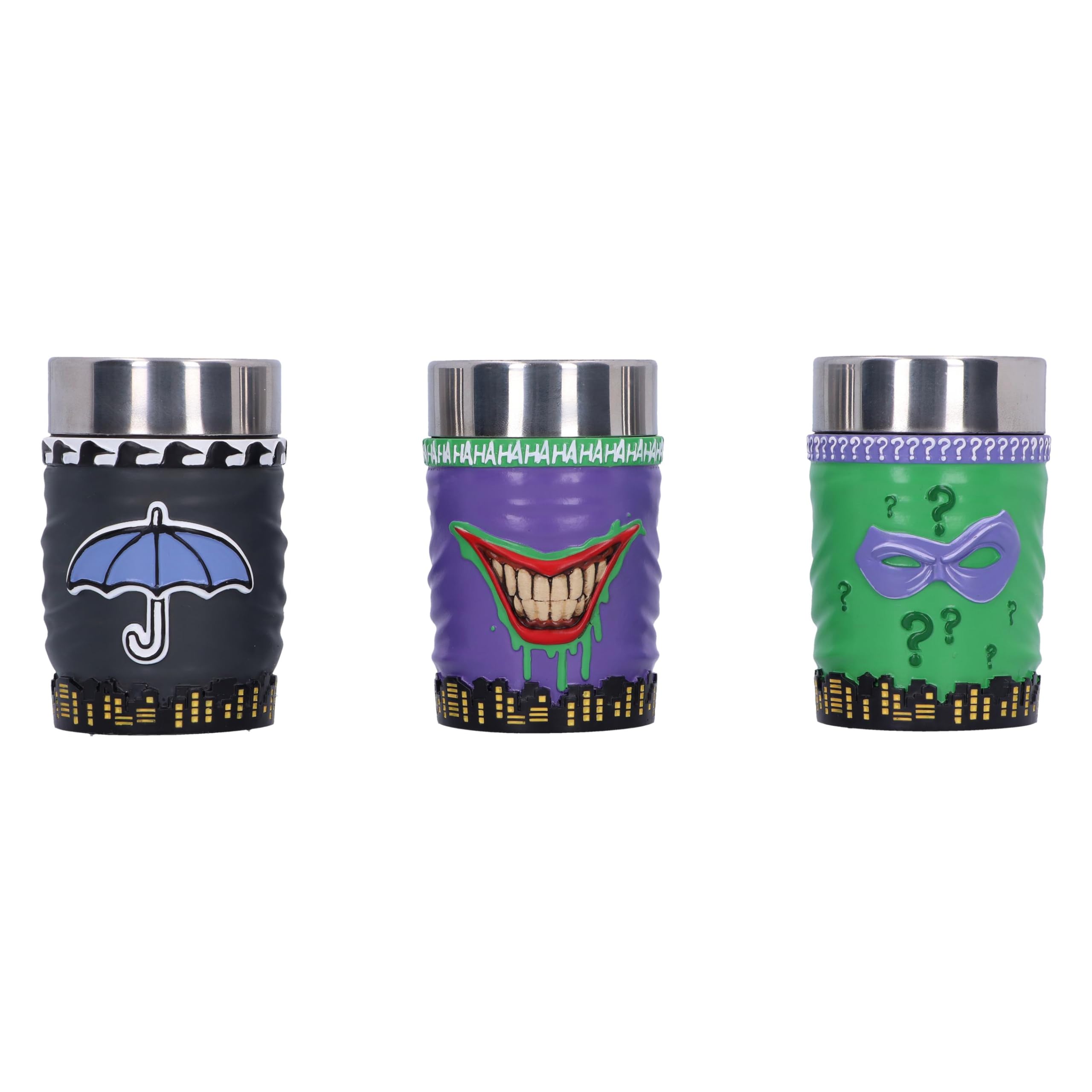 Nemesis Now DC Batman Supervillain Collectible Mini Cup Set 8.5cm, Resin, Official DC Merchandise, Set of 3 DC Shot Glass Cups, Cast in The Finest Resin, Expertly Hand-Painted, Black, Purple, Green
